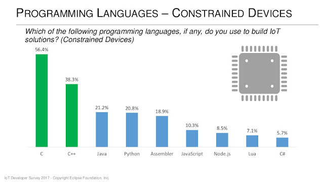 このIoTの組み込み製品に使われているプログラミング言語のランキングを見てください。